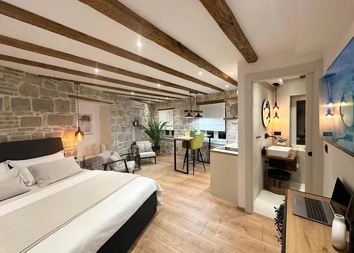In 10 Fußminuten vom Zentrum von Split aus erreichbar, ist das Apartment Apartments Put Plokita eine behagliche Unterkunft mit kostenlosen Parkplätzen, einem Patio und einem Garten. Jupitertempel ist 1 km vom Apartment entfernt und Bačvice ist auch in etwa 1,1 km Entfernung gelegen.