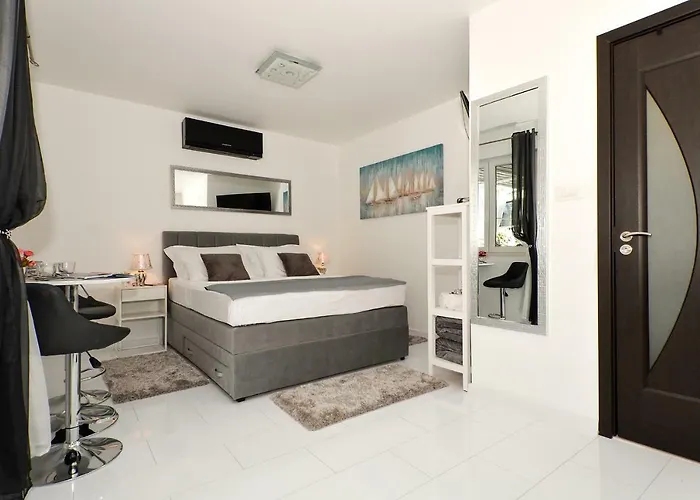 Este apartamento frente a la playa de 60 m², Perla Luxury Apartment, está situado junto a la Playa de Znjan y está equipado con un aparcamiento gratuito, habitaciones para alérgicos y una terraza. El apartamento está aproximadamente a 10 minutos a pie del Lidl Makarska y ofrece acceso a Dolls.